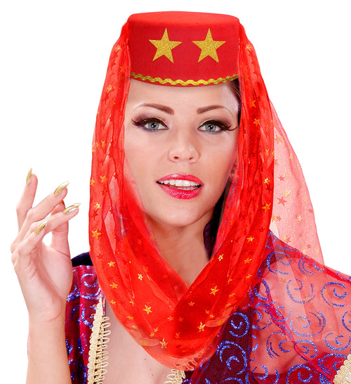 Tauchen Sie mit diesem roten Haremshut und Schleier in die Welt von Tausendundeiner Nacht ein! Perfekt für eine zauberhafte Party oder Karneval. Merkmale Samtig weicher roter Stoff Verführerischer Schleier Einheitsgröße Erobere die Party Mit diesem Hut ziehen Sie garantiert alle...