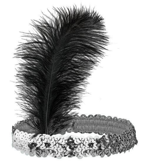 Reisen Sie mit diesem Charleston-Stirnband mit silbernen Pailletten in die Vergangenheit! Perfekt für eine schwungvolle Party. Warten Sie nicht länger und stehlen Sie allen die Show! Merkmale Funkelnde silberne Pailletten Bequeme Passform Retro-Charleston-Stil Im Charleston! Fühlen Sie sich wie ein...