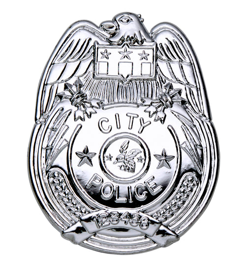 Robustes silbernes Polizeiabzeichen für Karneval Dieses echte amerikanische Polizeiabzeichen passt hervorragend zu Ihrem Karnevals-Polizeianzug. Passend zur Partykleidung Ihrer Wahl gibt es auch gefälschte Sheriff-Sterne und FBI-Abzeichen. Dieses Polizeiabzeichen ist ein schönes Accessoire für die Polizei.
