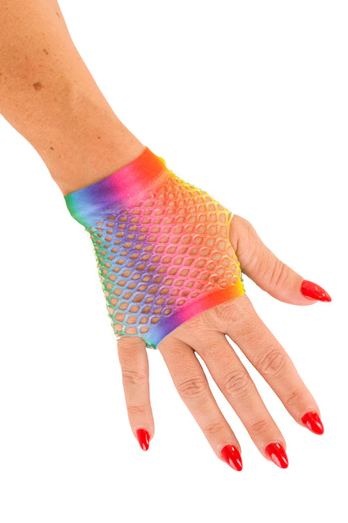 Schöne kurze fingerlose Netzhandschuhe in Regenbogenfarben