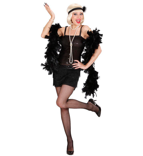 Machen Sie mit diesem stilvollen Flapper-Kleid in Schwarz eine Zeitreise in die Vergangenheit und stehlen Sie auf jeder Party die Show! Merkmale Erhältlich in den Größen L, M, S Elegante schwarze Farbe Perfekt für Mottopartys Tanzen Sie den Charleston! Fühlen...