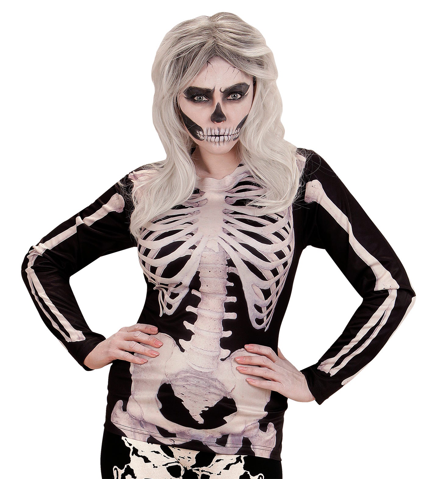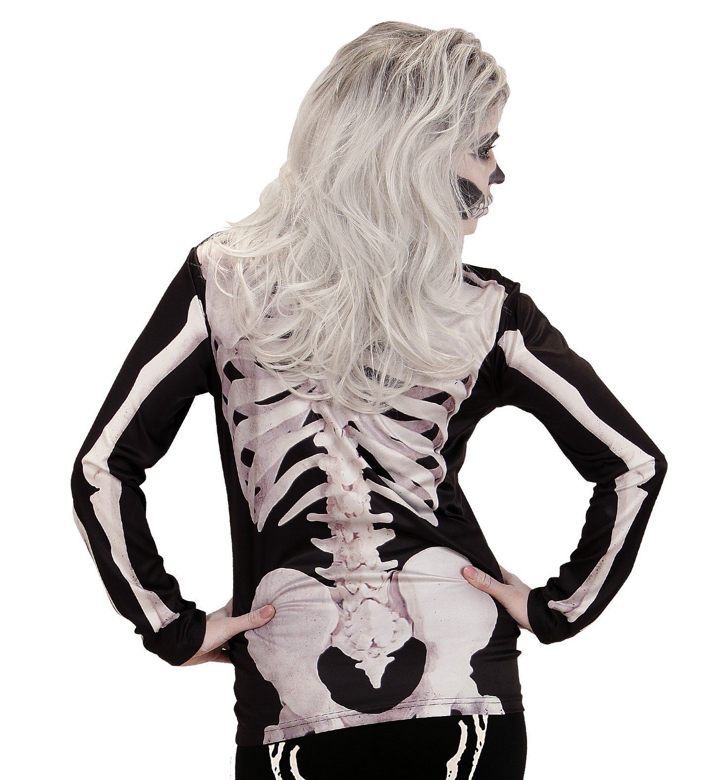 Das gruselige Skelett-Kostüm für Damen beinhaltet das langärmlige T-Shirt Mehr lesen