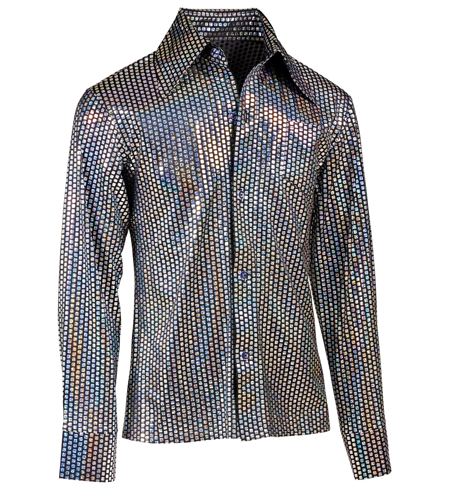 Disco-Shirt 1970er Silber Herren