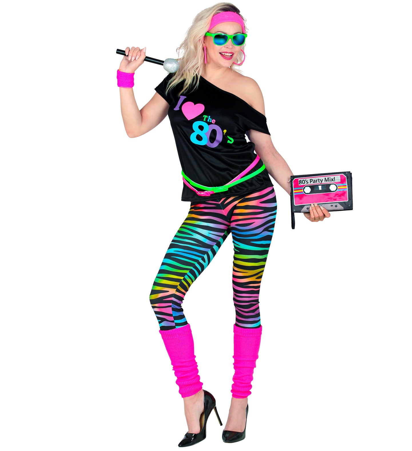 Tauche ein in die Zeit mit unserem 80er Jahre Neon Disco Outfit für Damen! Perfekt für eine wilde Party, bei... Mehr lesen