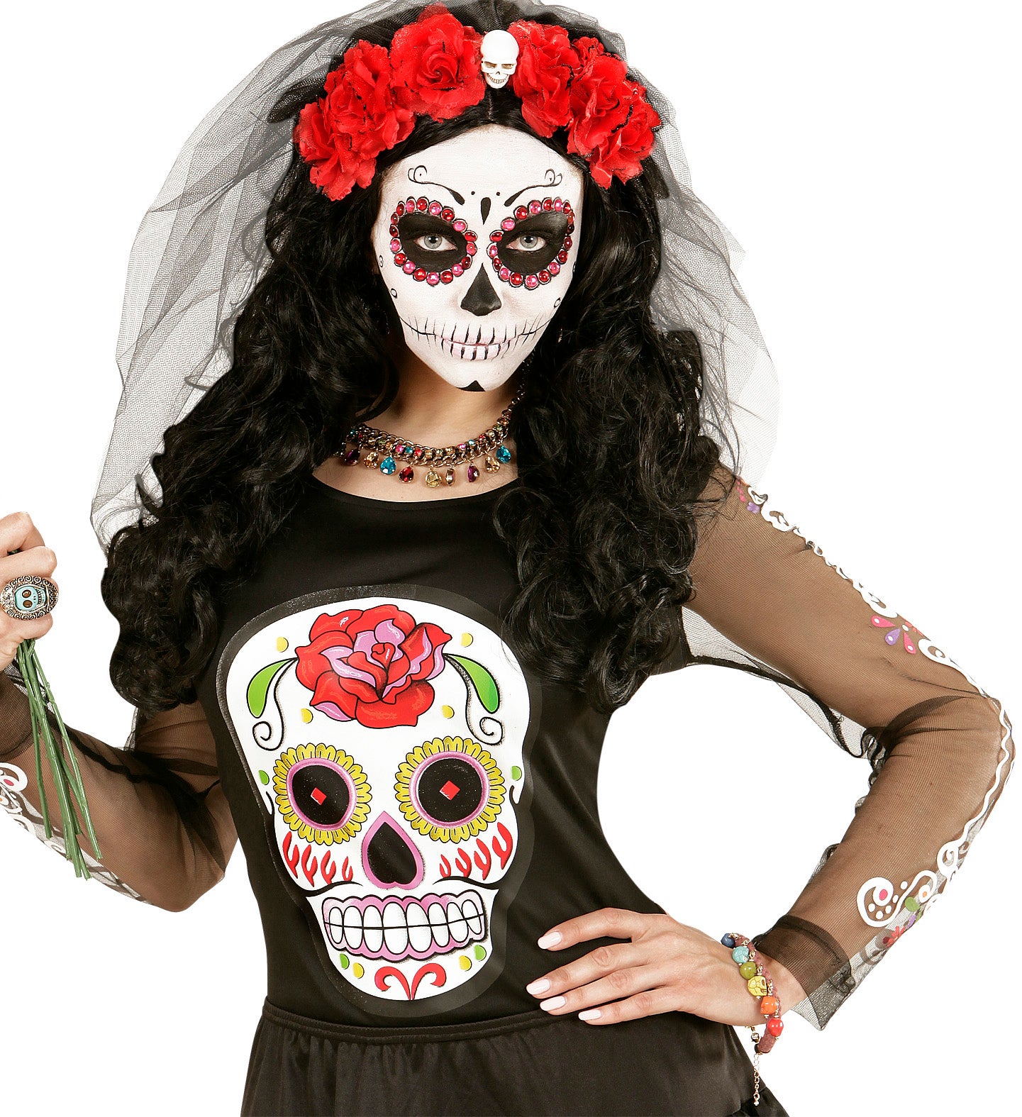 Originelles Armband mit Totenköpfen Schönes Armband mit Totenköpfen in Regenbogenfarben. Der Schmuck passt zu einem teuflischen Outfit oder einem Piratenkostüm... Mehr lesen