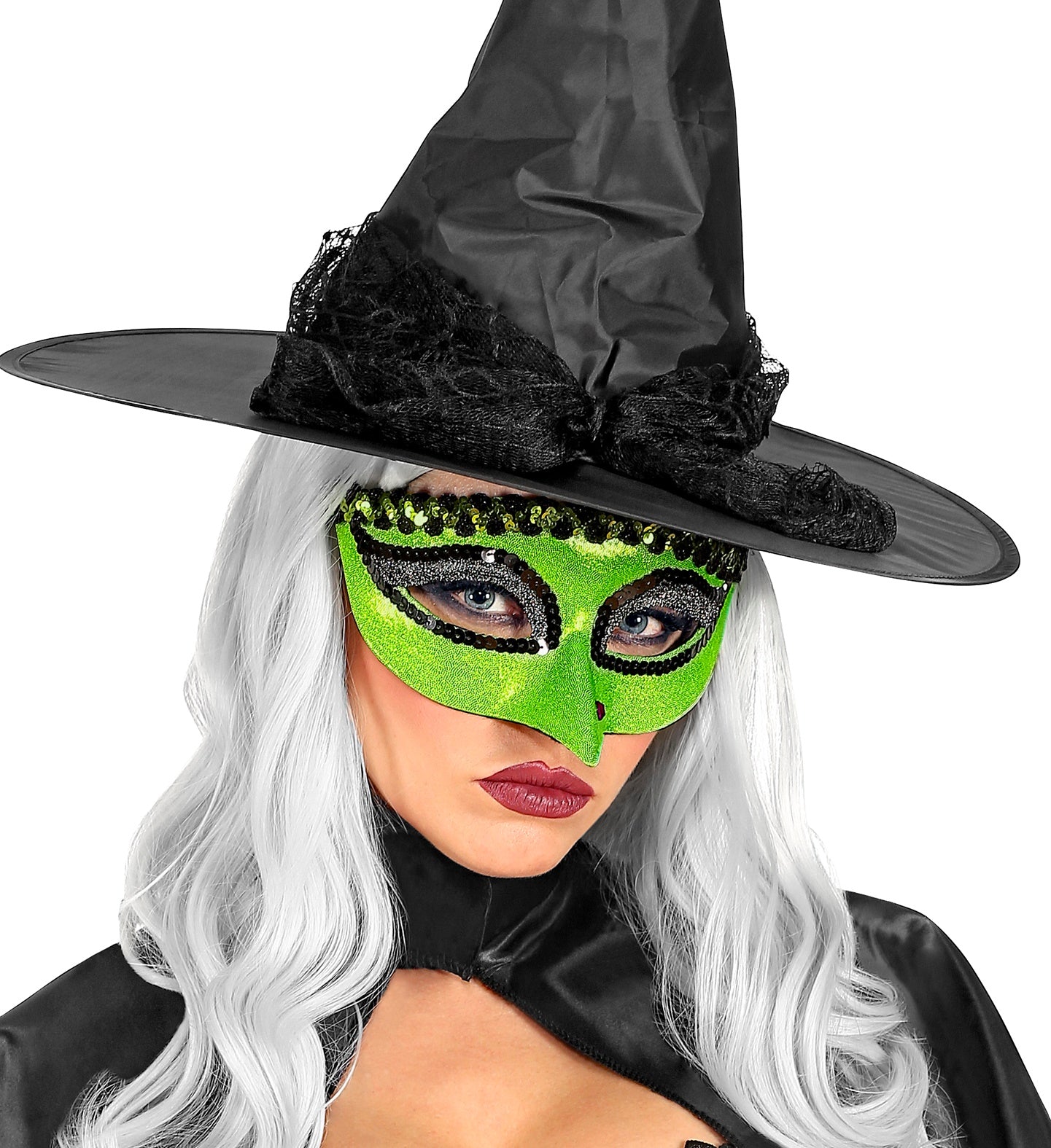 Grüne Hexenaugenmaske mit Warze