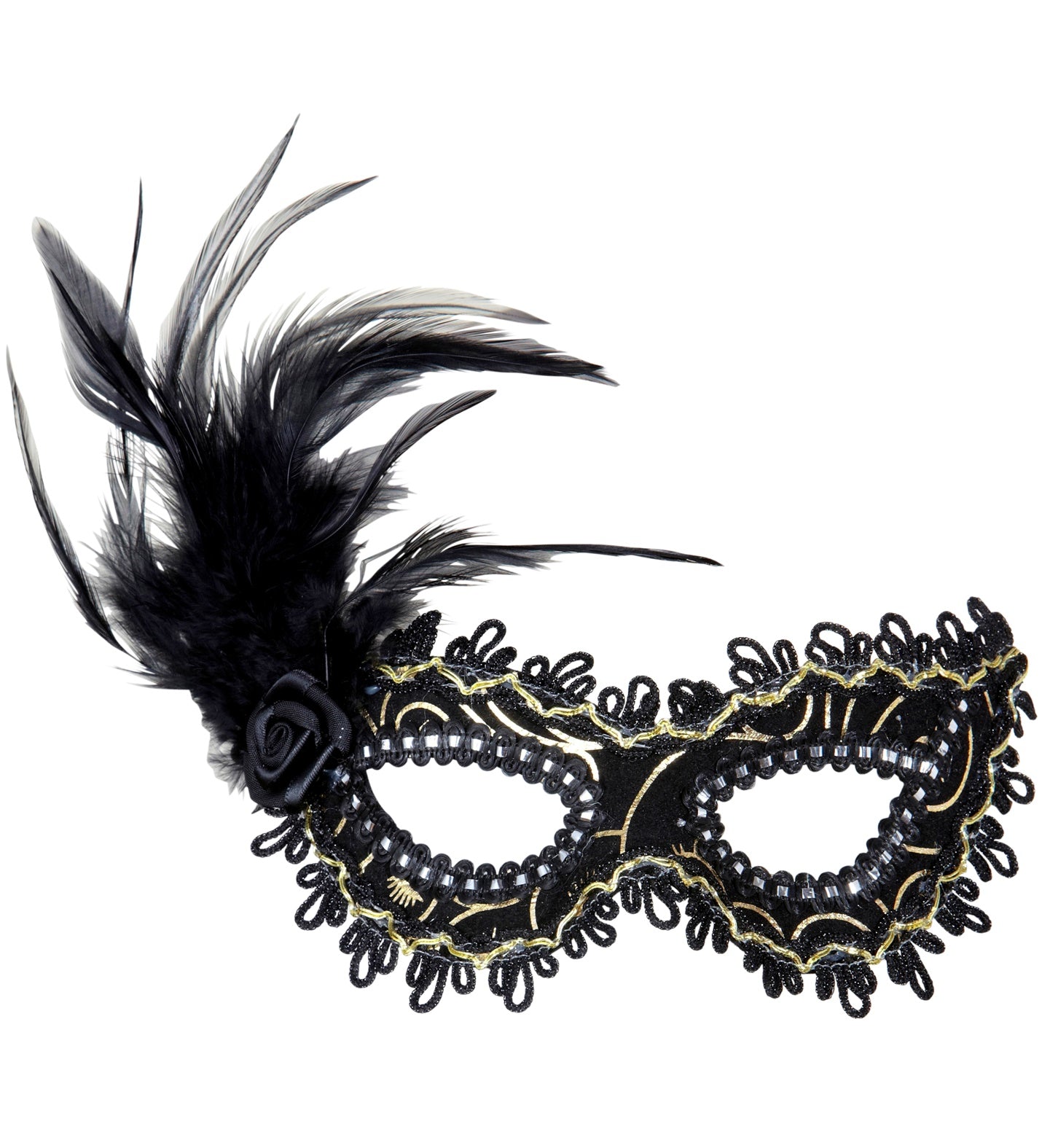 Augenmaske schwarz mit Federn