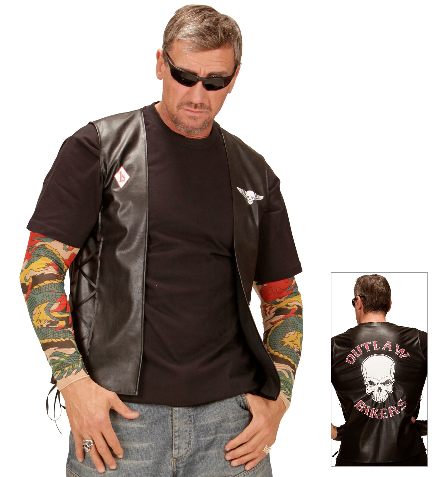 Verwandeln Sie sich mit unserer Outlaw Bikerweste in Lederoptik in einen harten Rebellen! Perfekt für jede Karnevalsfeier oder Mottoparty. Fühlen... Mehr lesen