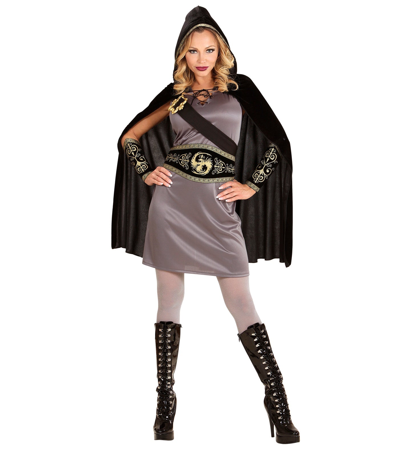 Kleid, Gürtel, Geldbörse, Armbänder, Umhang mit Kapuze Mehr lesen