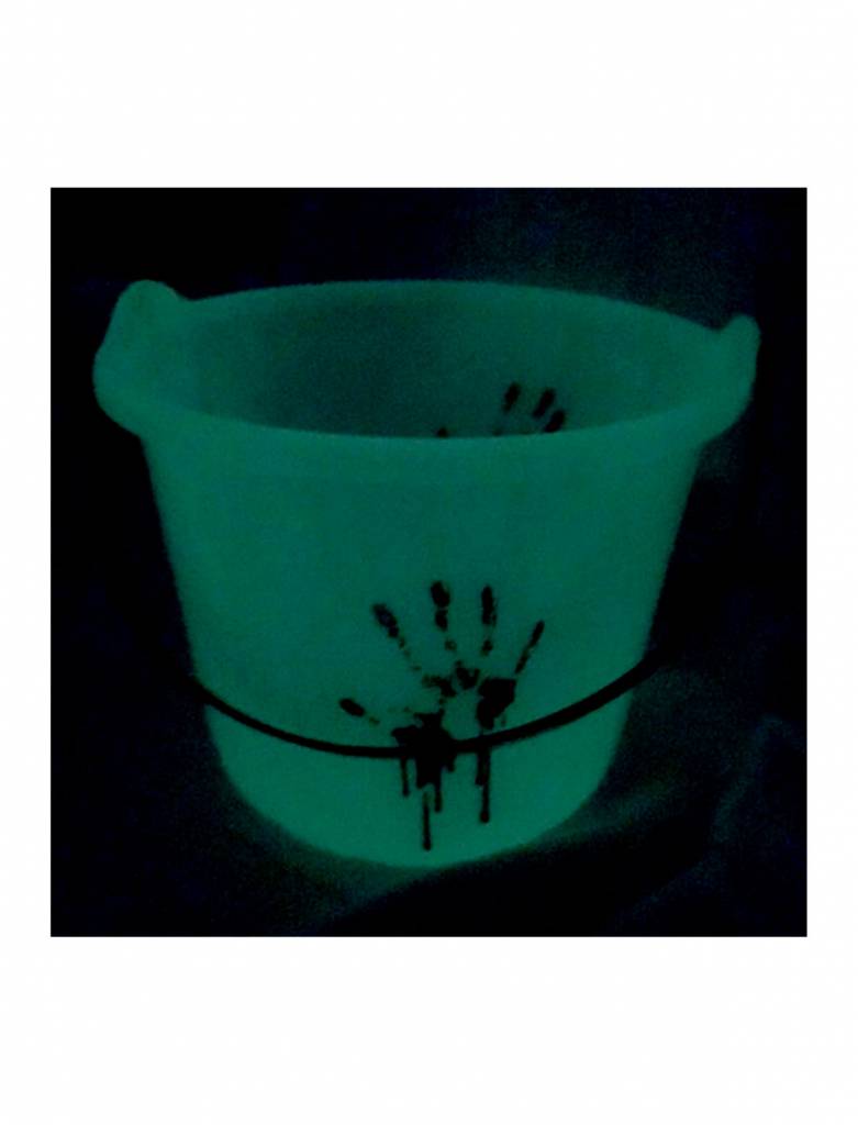 Eimer mit blutiger Hand