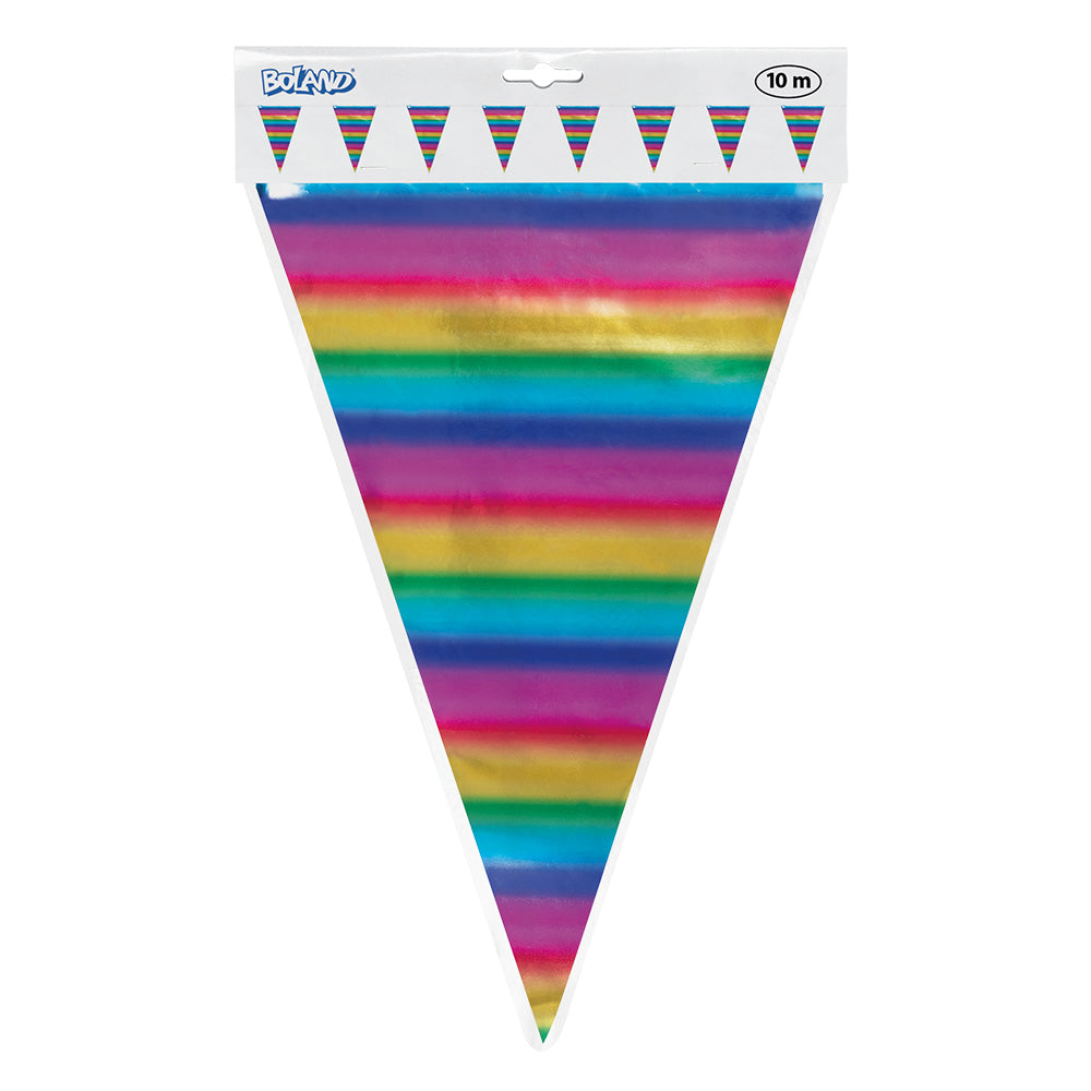 Flaggenlinie aus metallischer Regenbogenfolie