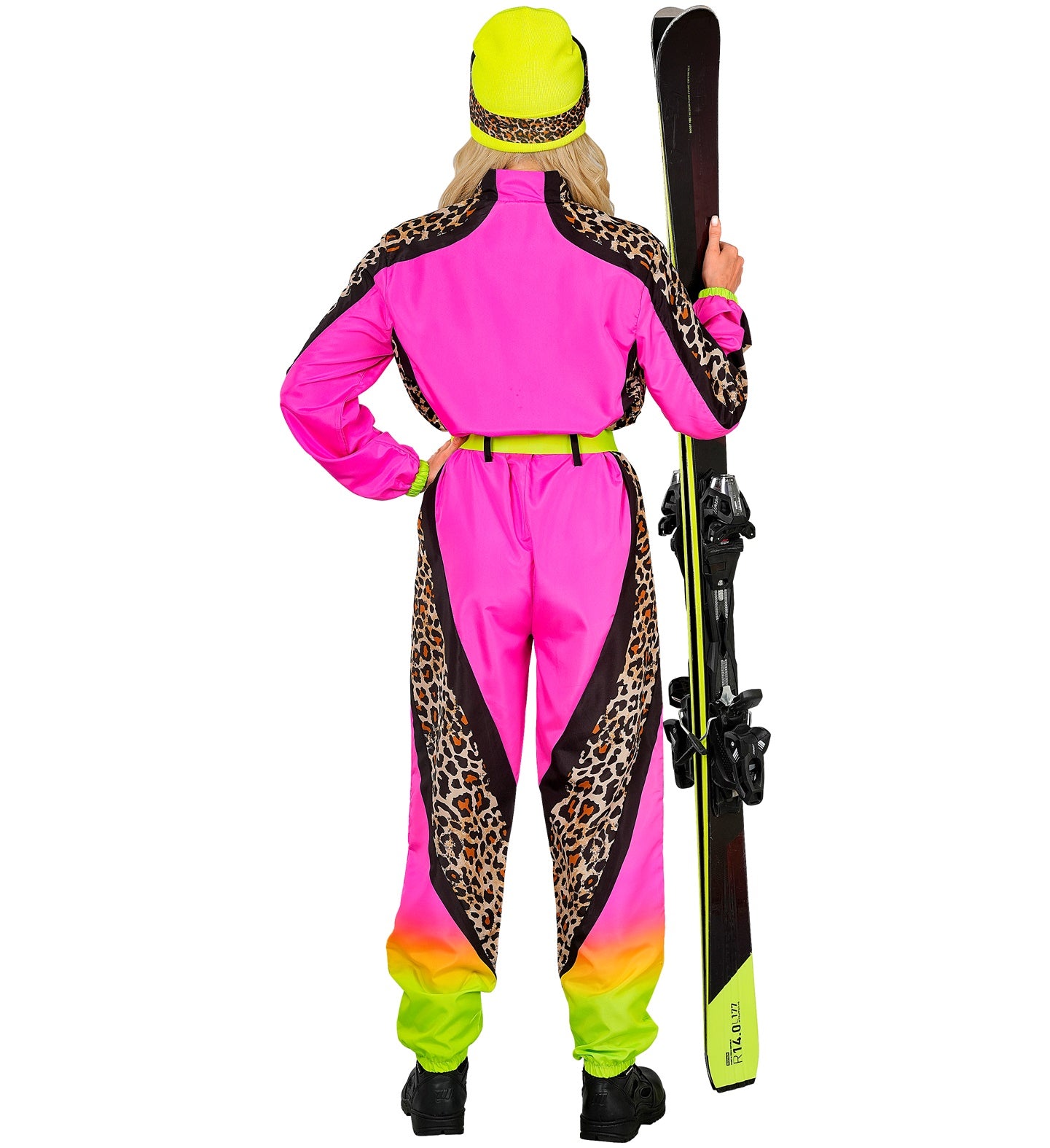 Fout ski pak snowboarder luipaard roze/geel volwassenen