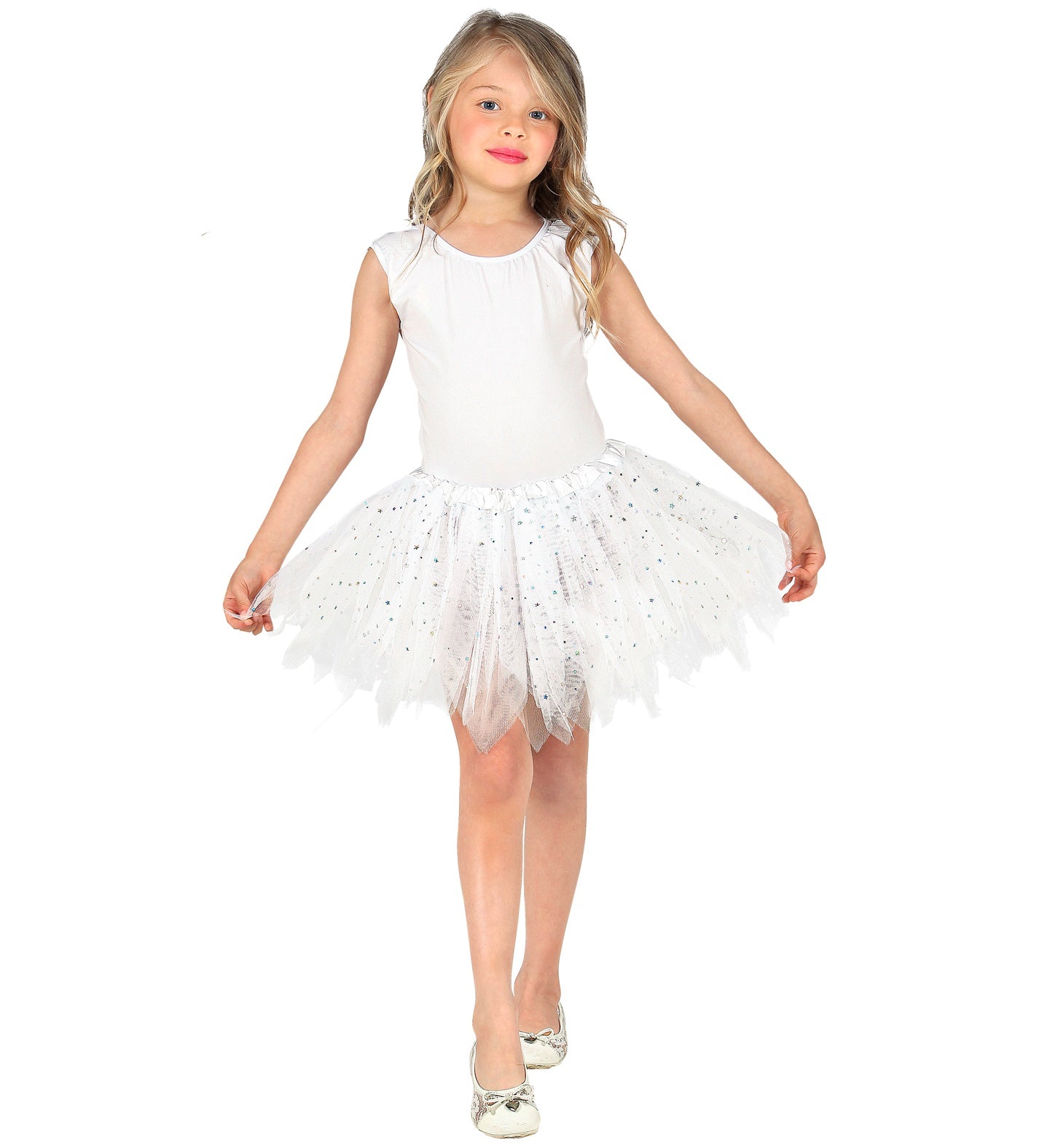 Glitzer-Tutu-Rock kurz weiß für Kinder