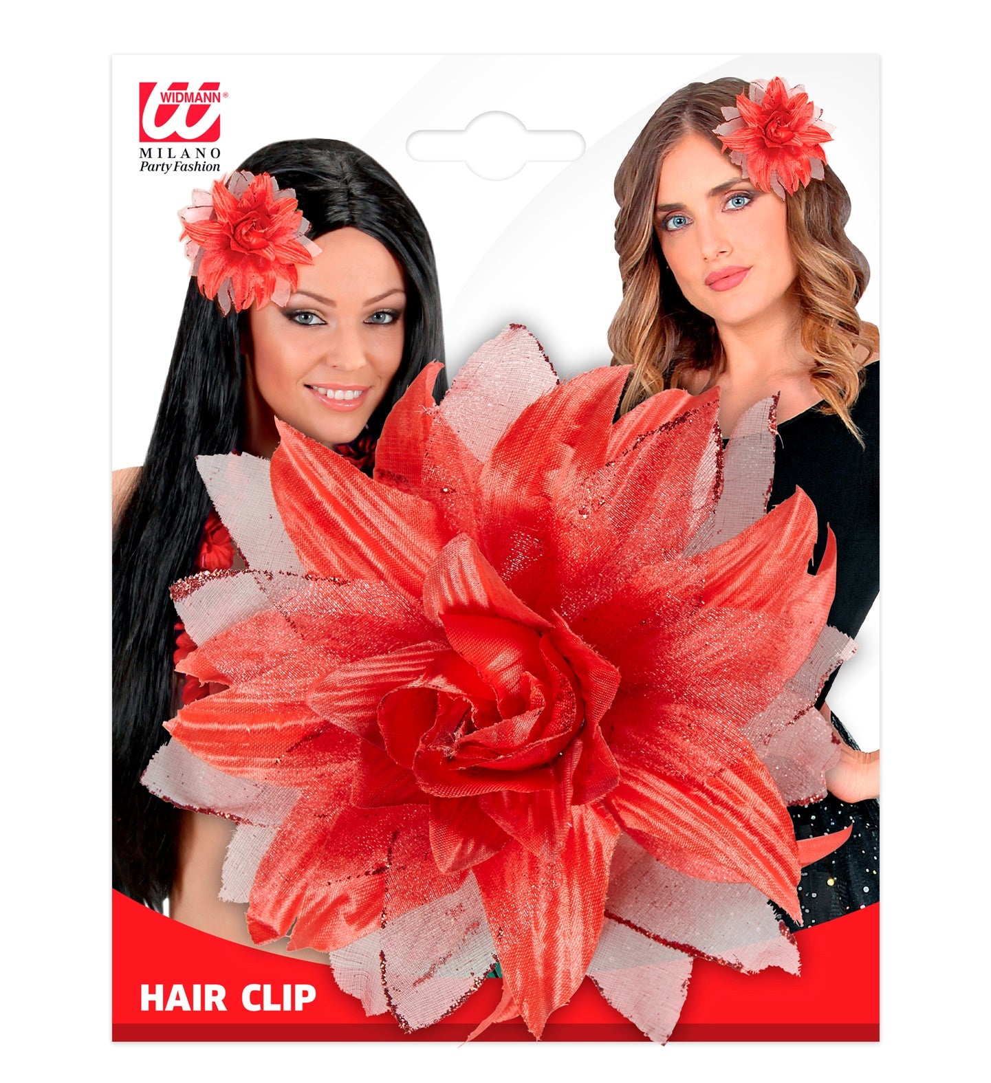Rote Blumenhaarspange mit Glitzer