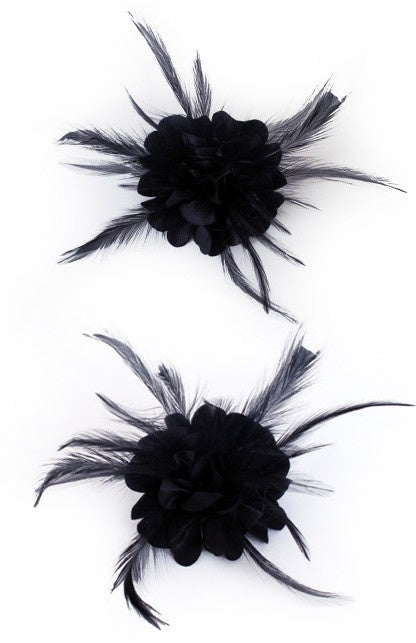 Haarnadel mit schwarzer Seidenblume und Federn Haarnadel oder Haarspange mit schwarzer Seidenrose und Federn. Verkleiden Sie sich originell für einen... Mehr lesen