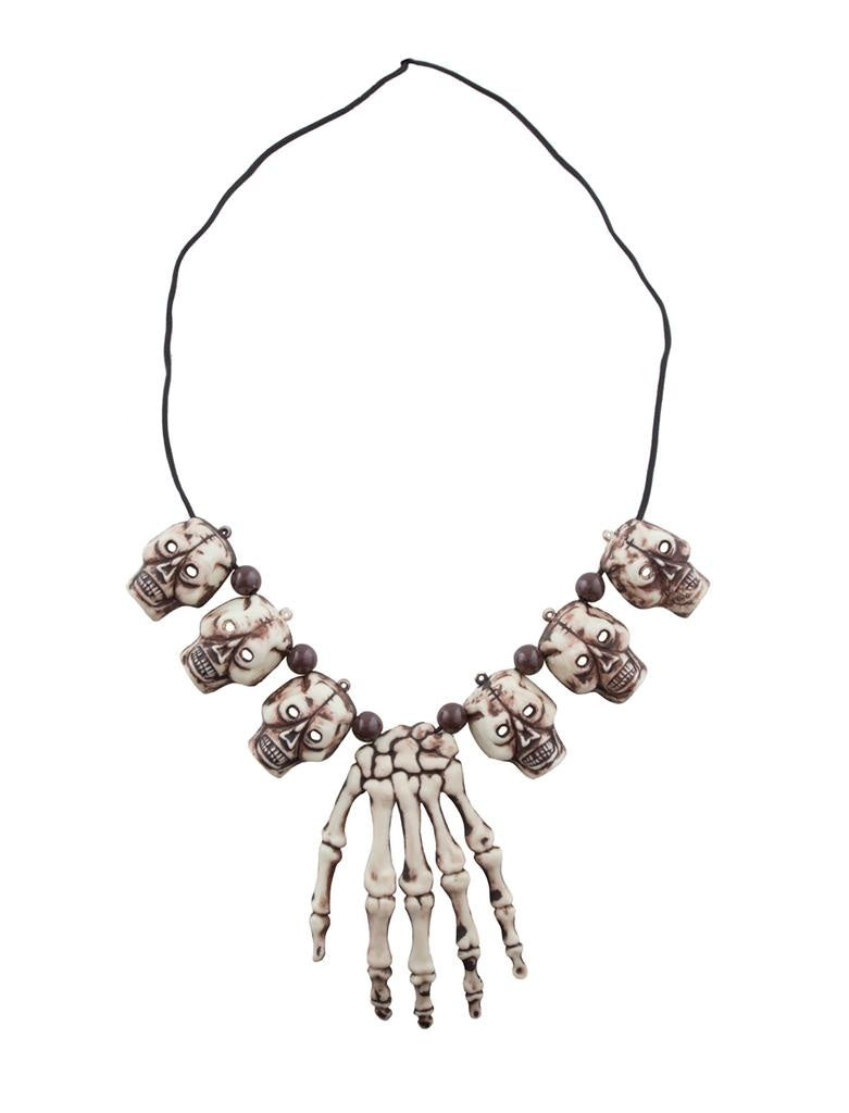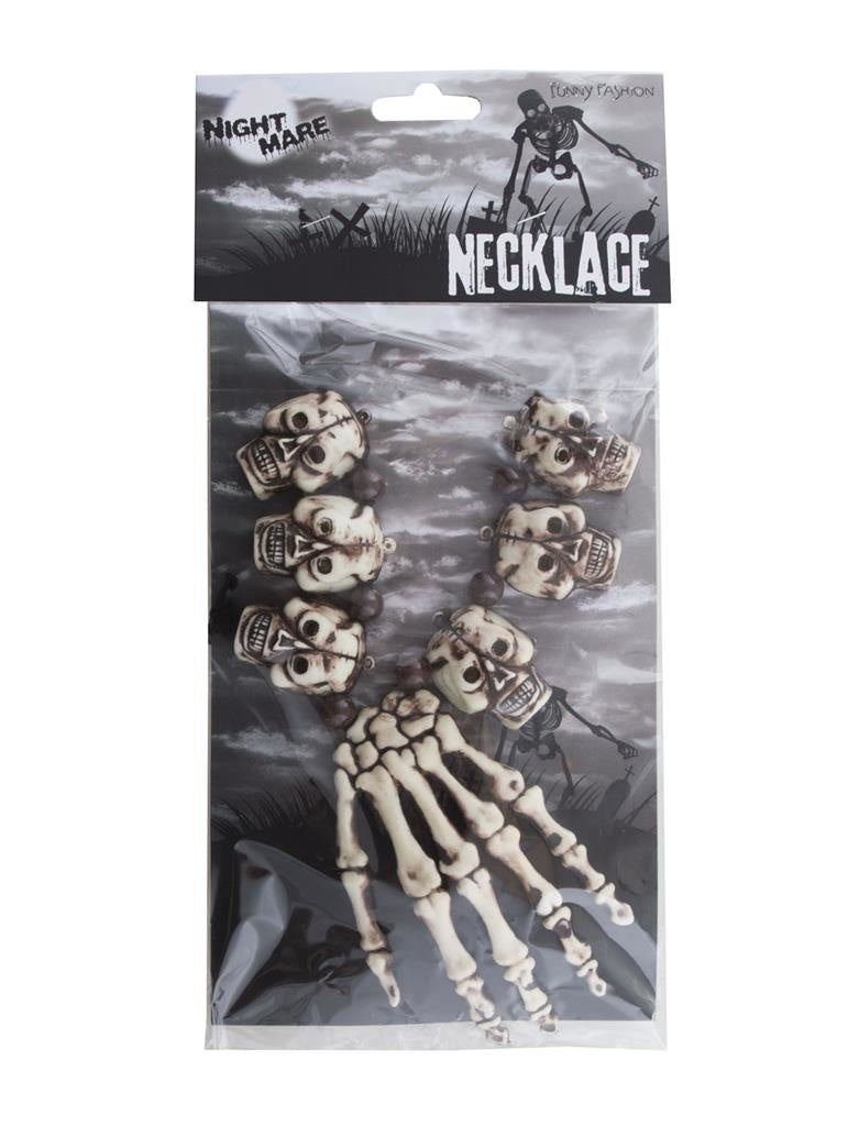 Halskette mit Totenköpfen und Hand