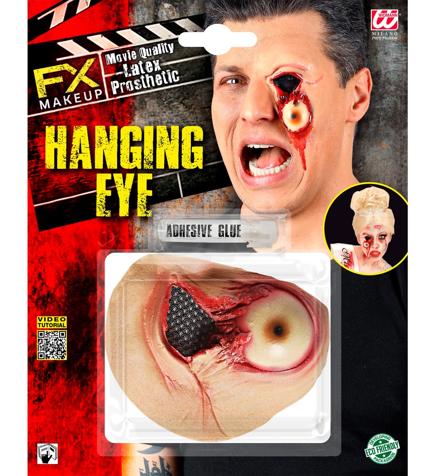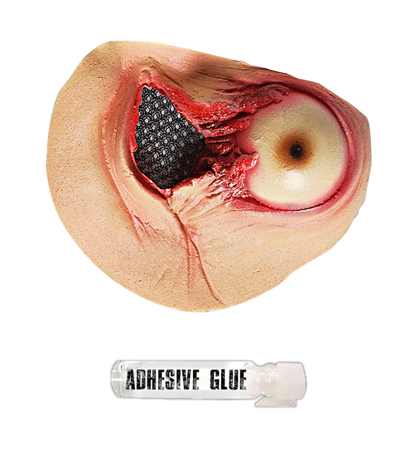 Falsches ausgestochenes Auge mit Kleber Falsches ausgestochenes Auge, um an Halloween eine schreckliche blutige Augenwunde in Ihrem Gesicht zu erzeugen.... Mehr lesen