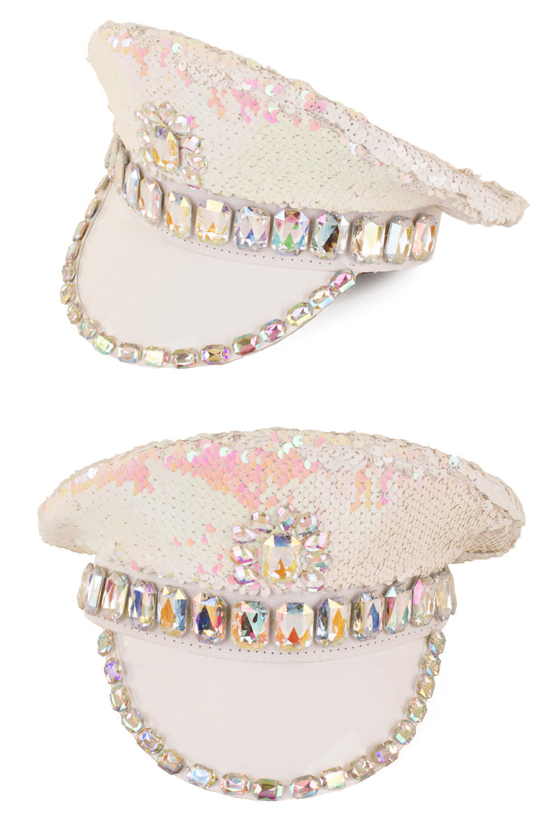 Cap pailletten mit steinen weiß