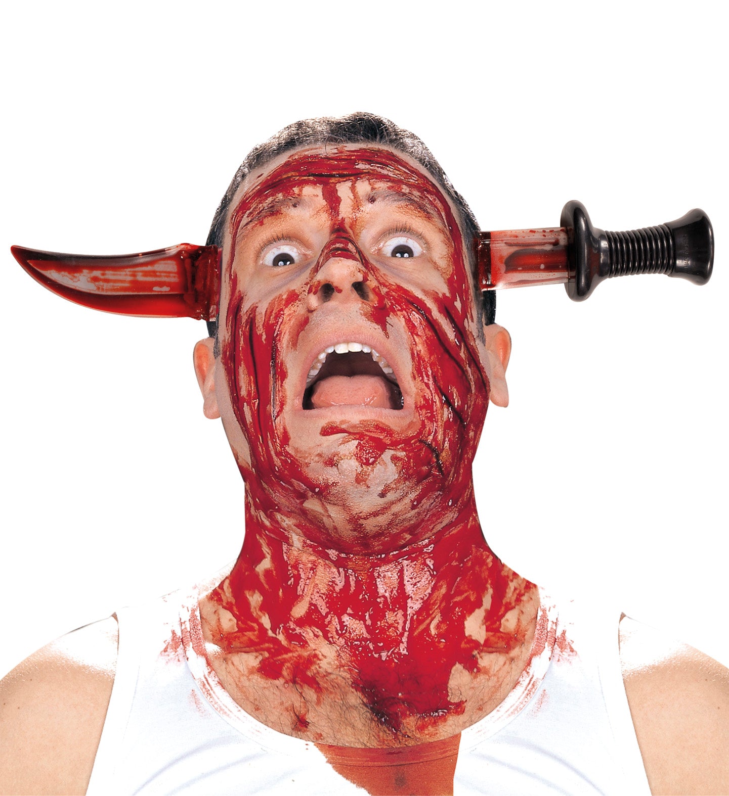 Messer durch den Kopf mit Blutdiadem