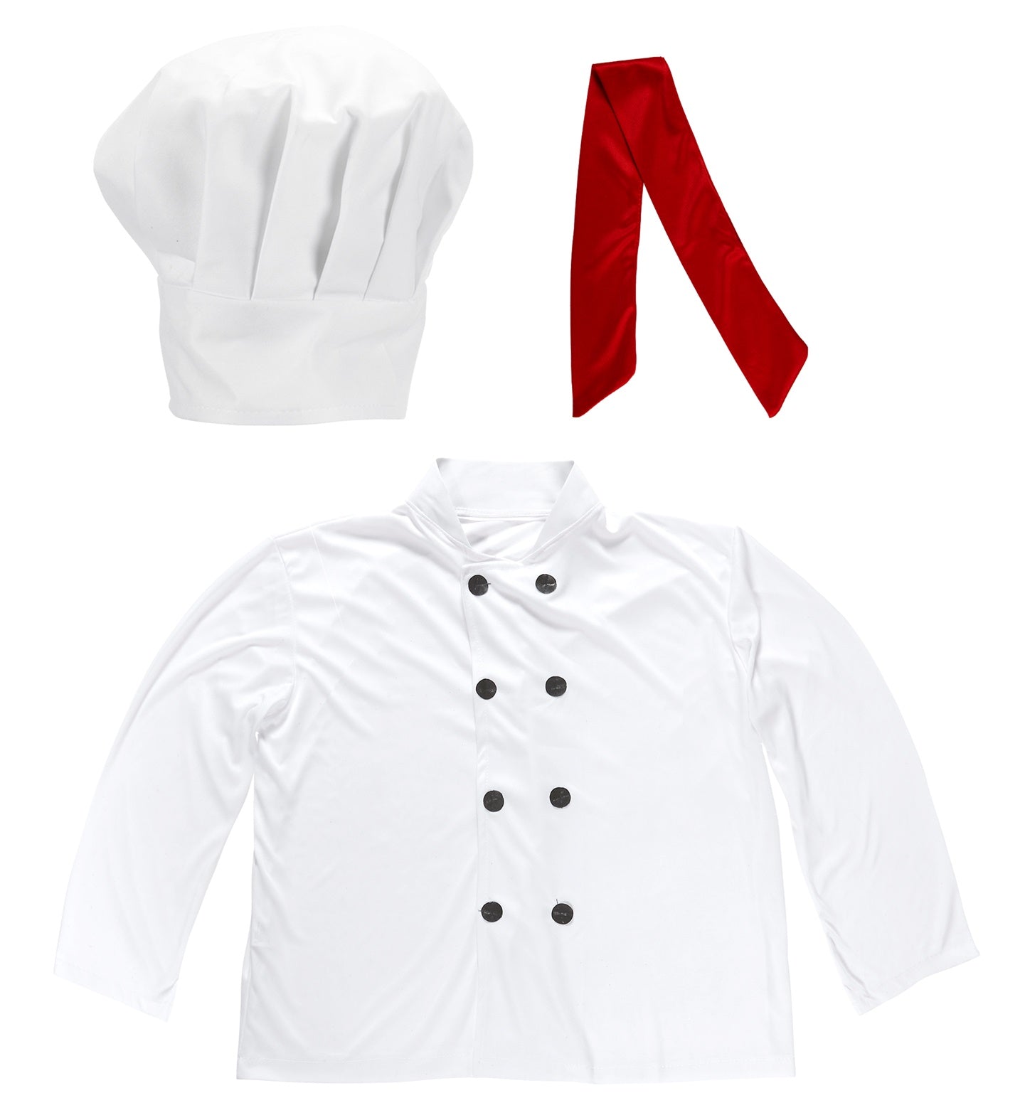 Kochkostüm-Set bestehend aus Kochjacke, Mütze und Schal