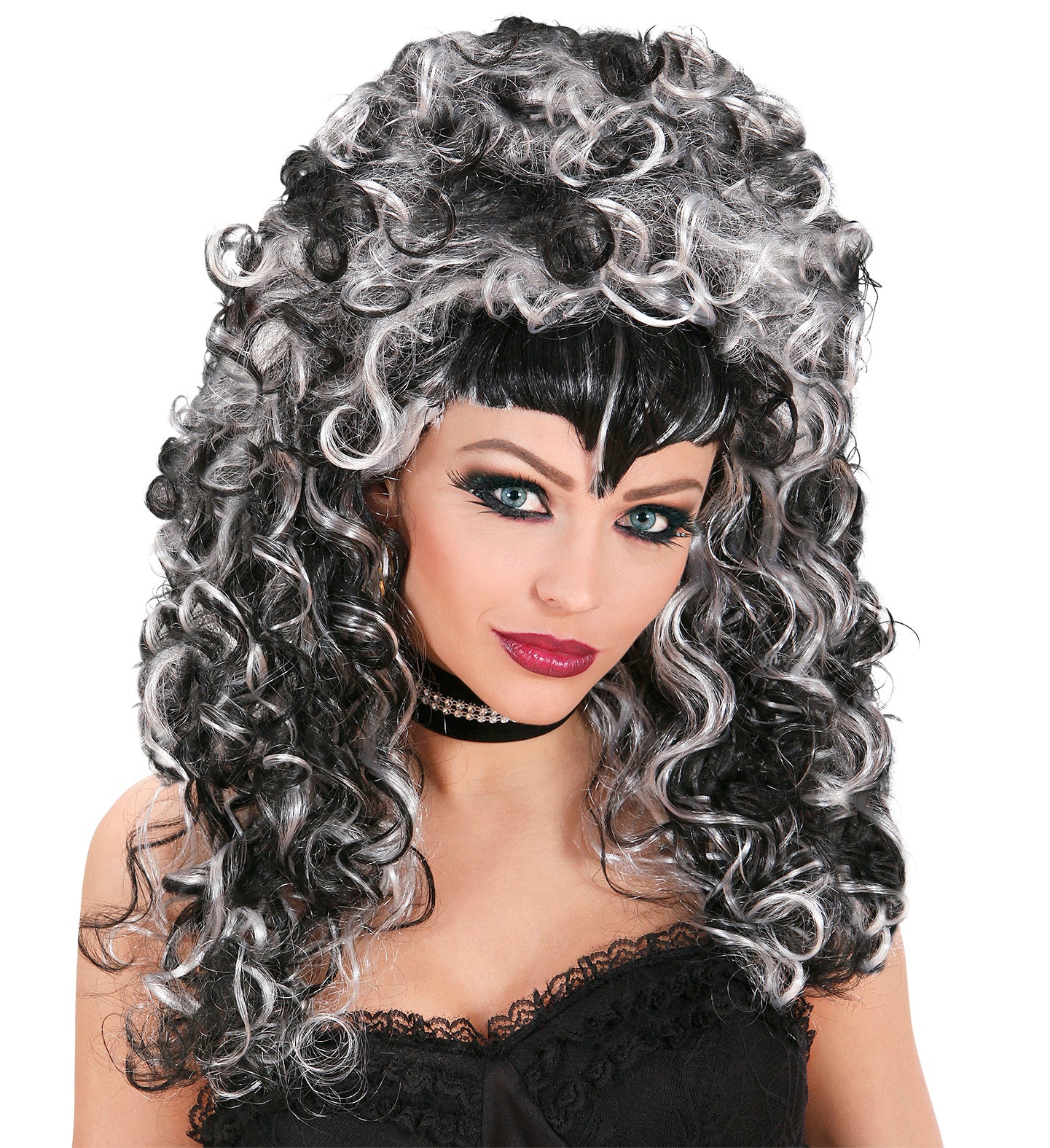 Hexenperücke Evelicious grau schwarz