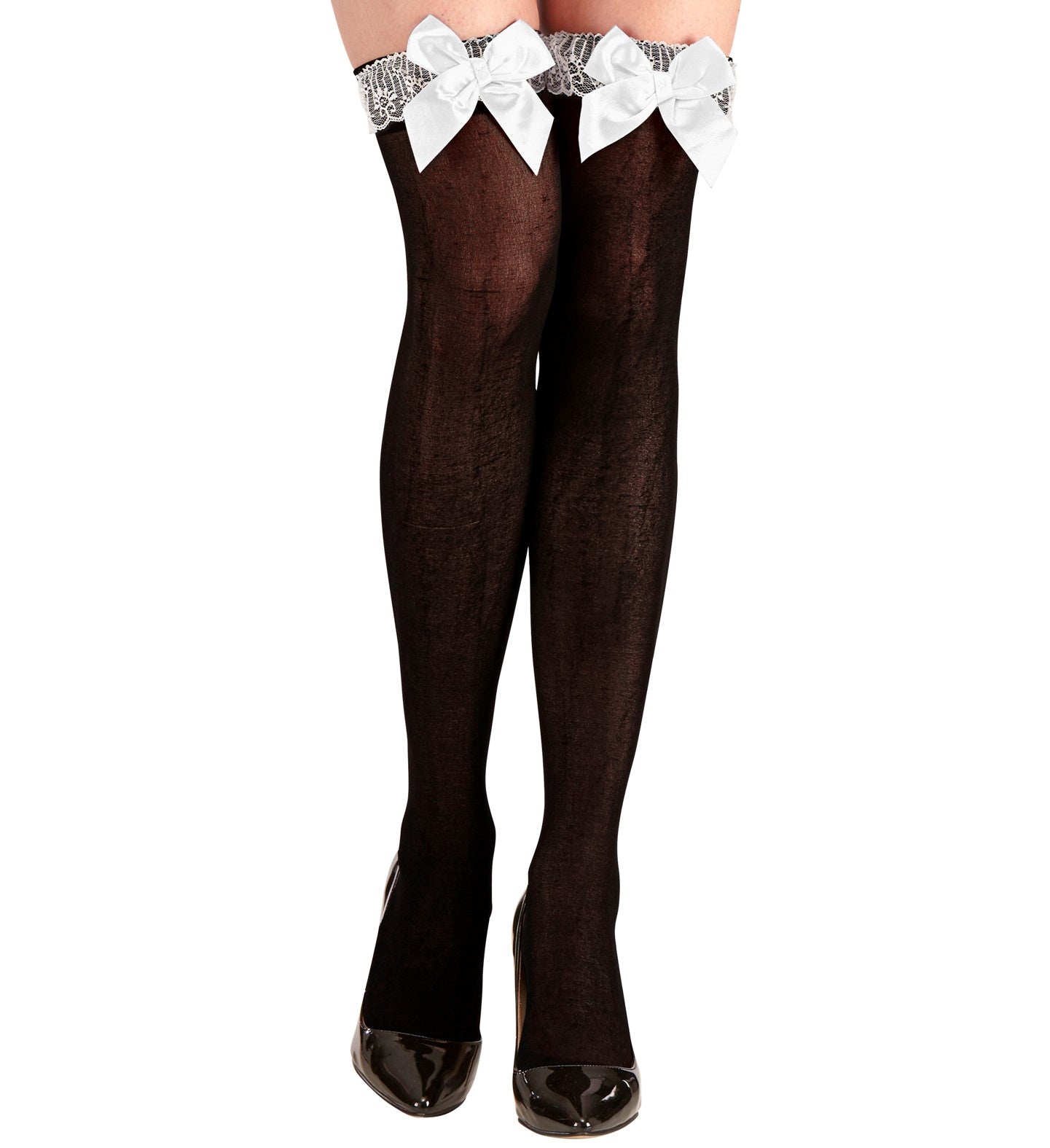 Hohe Strümpfe Zimmermädchen schwarz mit weißer Schleife