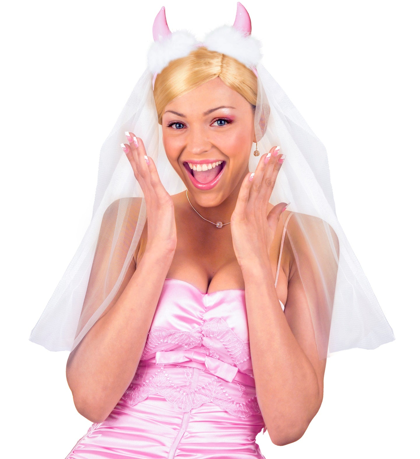 Braut soll Schleier mit rosa Hörnern sein