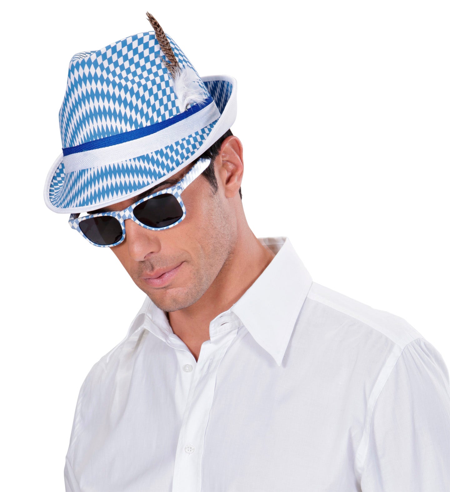 Oktoberfest-Fedora mit Feder blau weiß Feiern Sie das Oktoberfest stilvoll mit diesem eleganten bayerischen oder Tiroler Jodlerhut. Die ideale Wahl... Mehr lesen