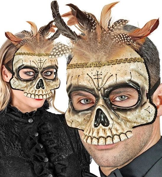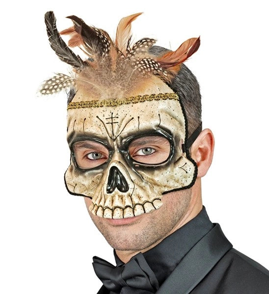 Kinnlose Maske Voodoo-Totenkopf mit Federn Maud
