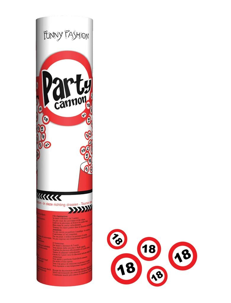 Schöner Konfetti-Shooter 20cm mit Verkehrsschildern bedruckt mit der Nummer 18 Mehr lesen