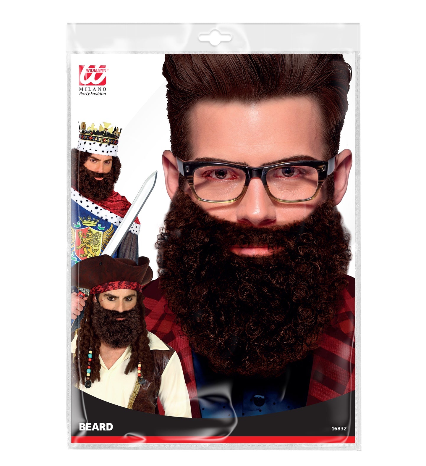 Lockiger Bart mit Schnurrbart Leonardo, braun