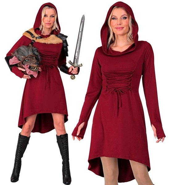 Mittelalter Gothic Kleid mit Kapuze rot Sara