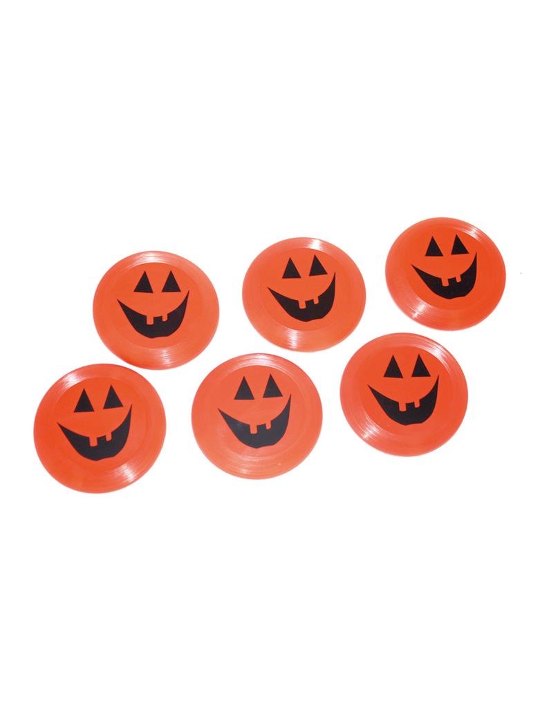 Set mit 6 Mini-Frisbee-Kürbissen. Frisbee ist ca. 9 cm groß. Mehr lesen
