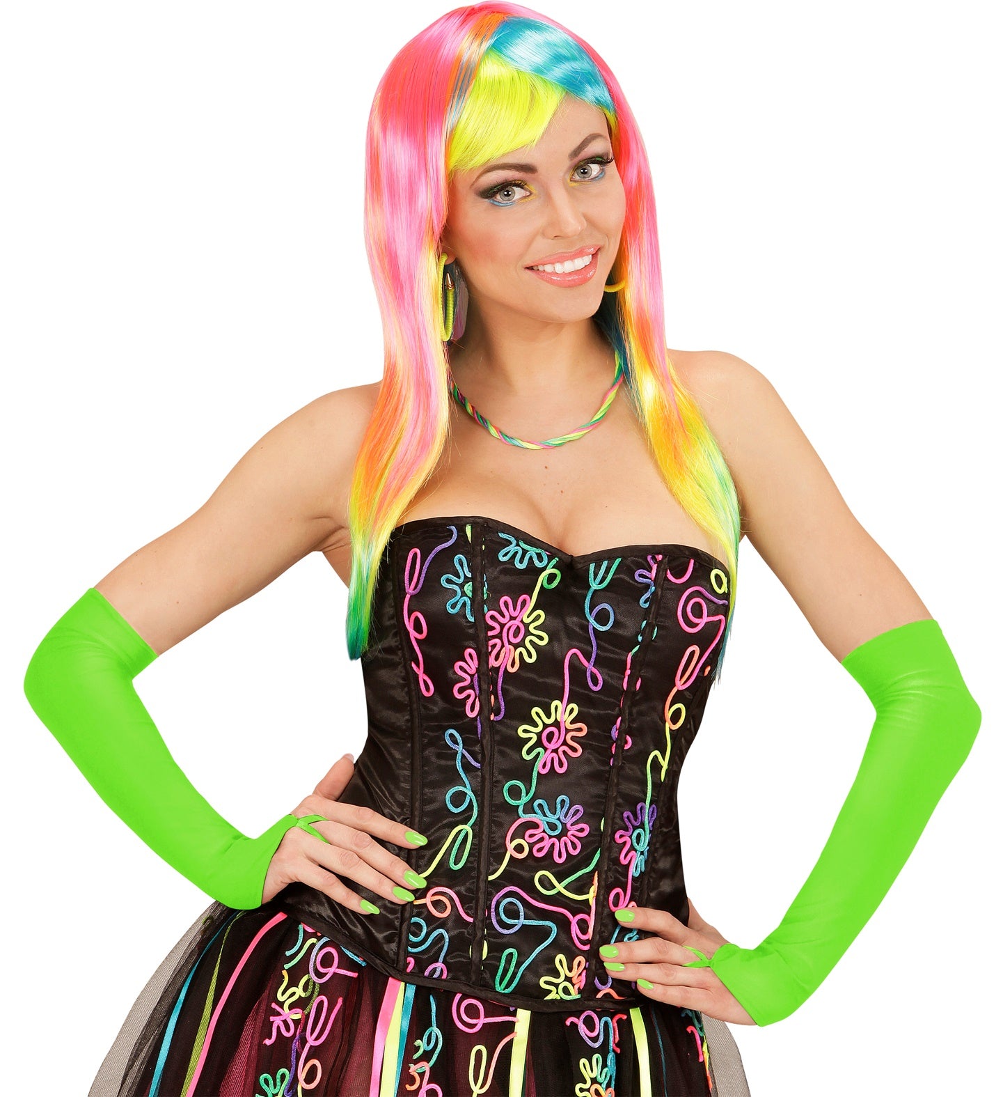 Neongrüne Handschuhe aus Satin