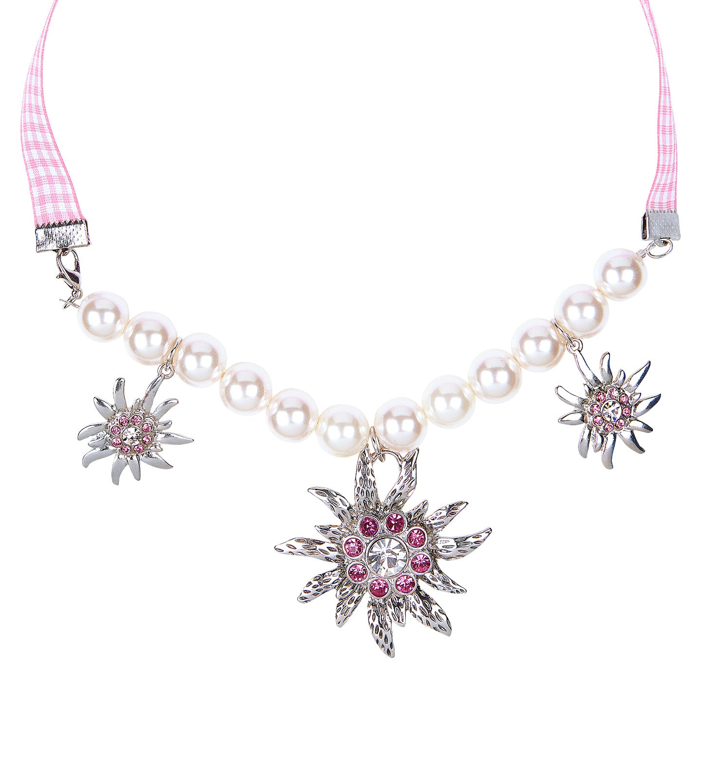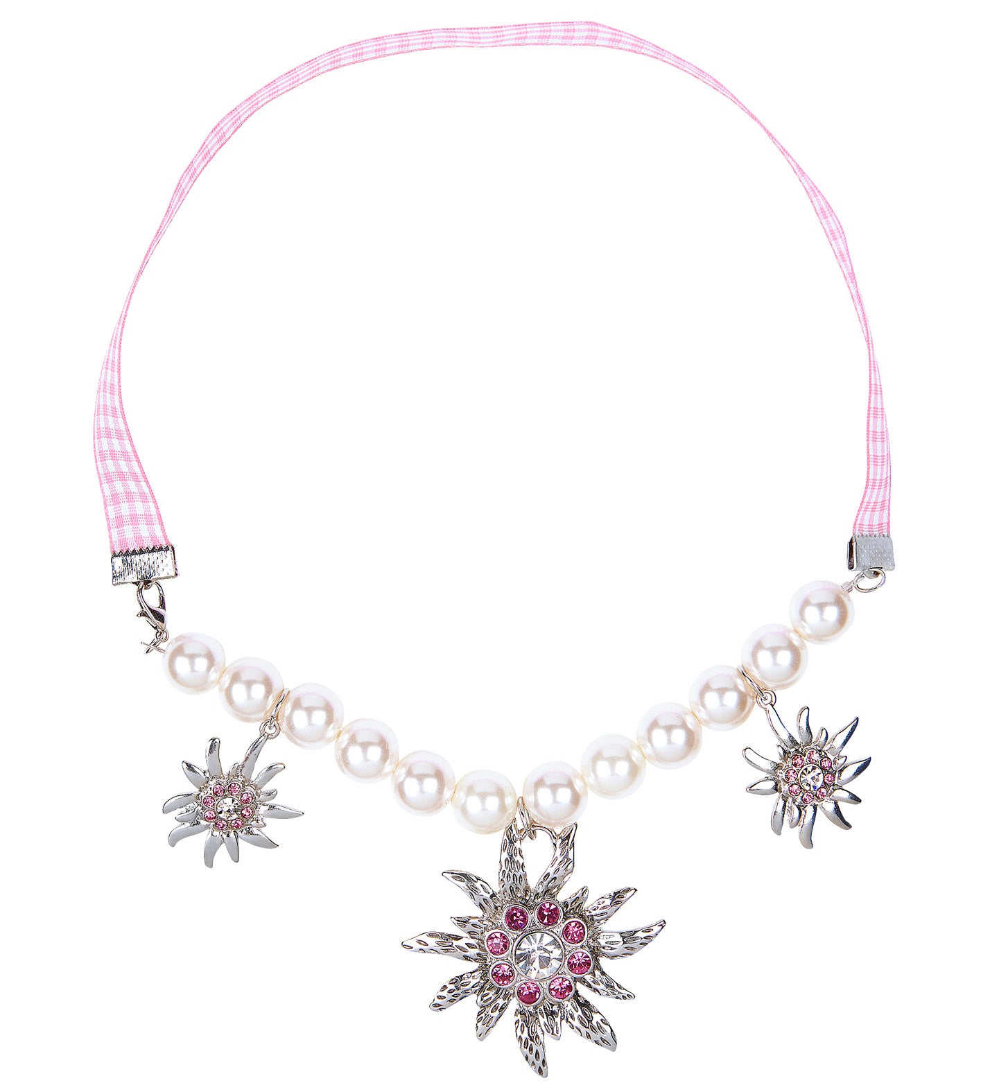 Schöne Halskette speziell für das Oktoberfest. Diese Edelweißkette passt perfekt zu einem Dirndlkleid. Mehr lesen