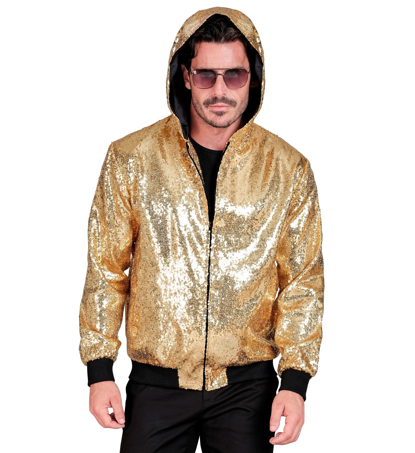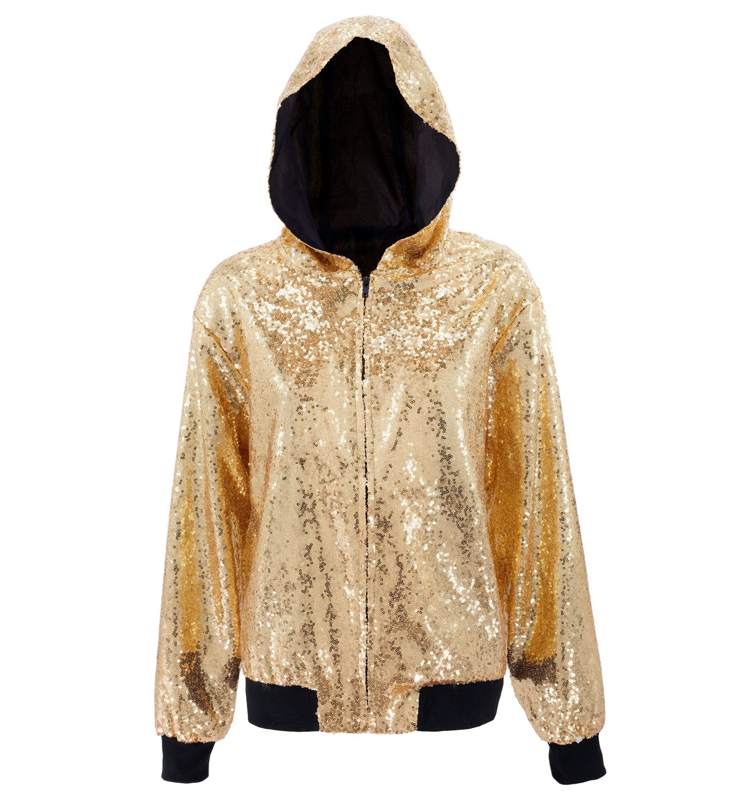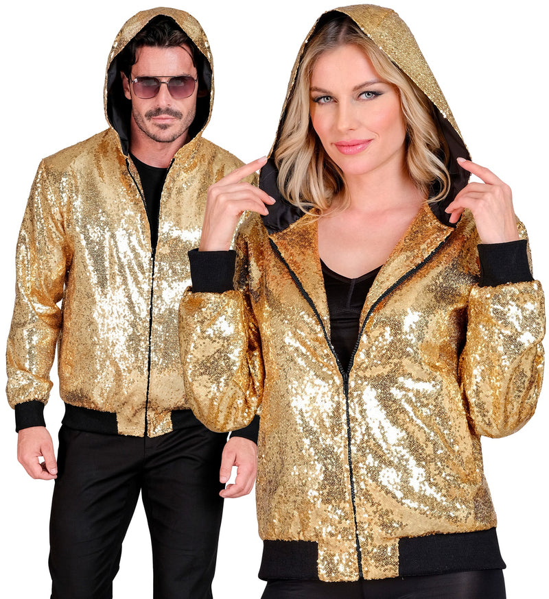 Pailletten-Bomberjacke mit goldener Kapuze
