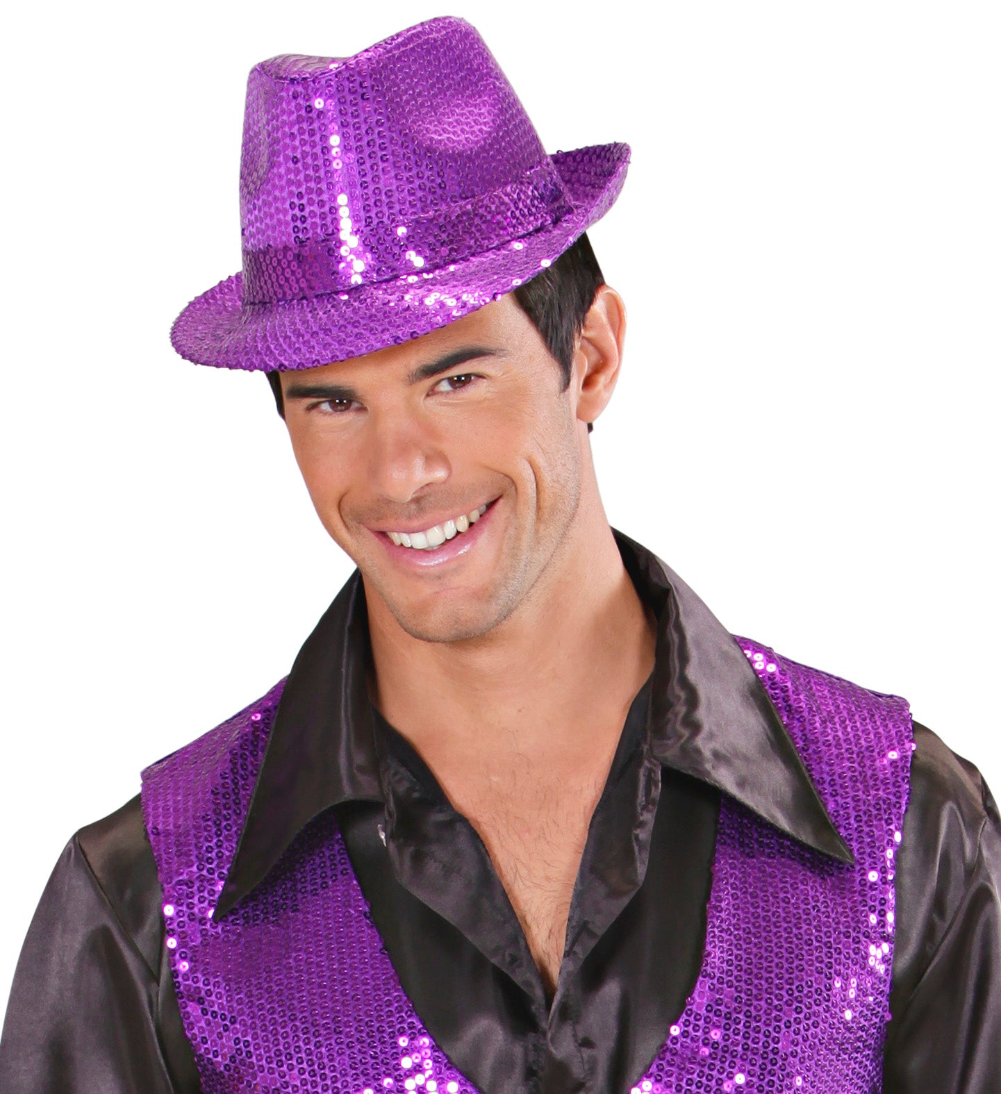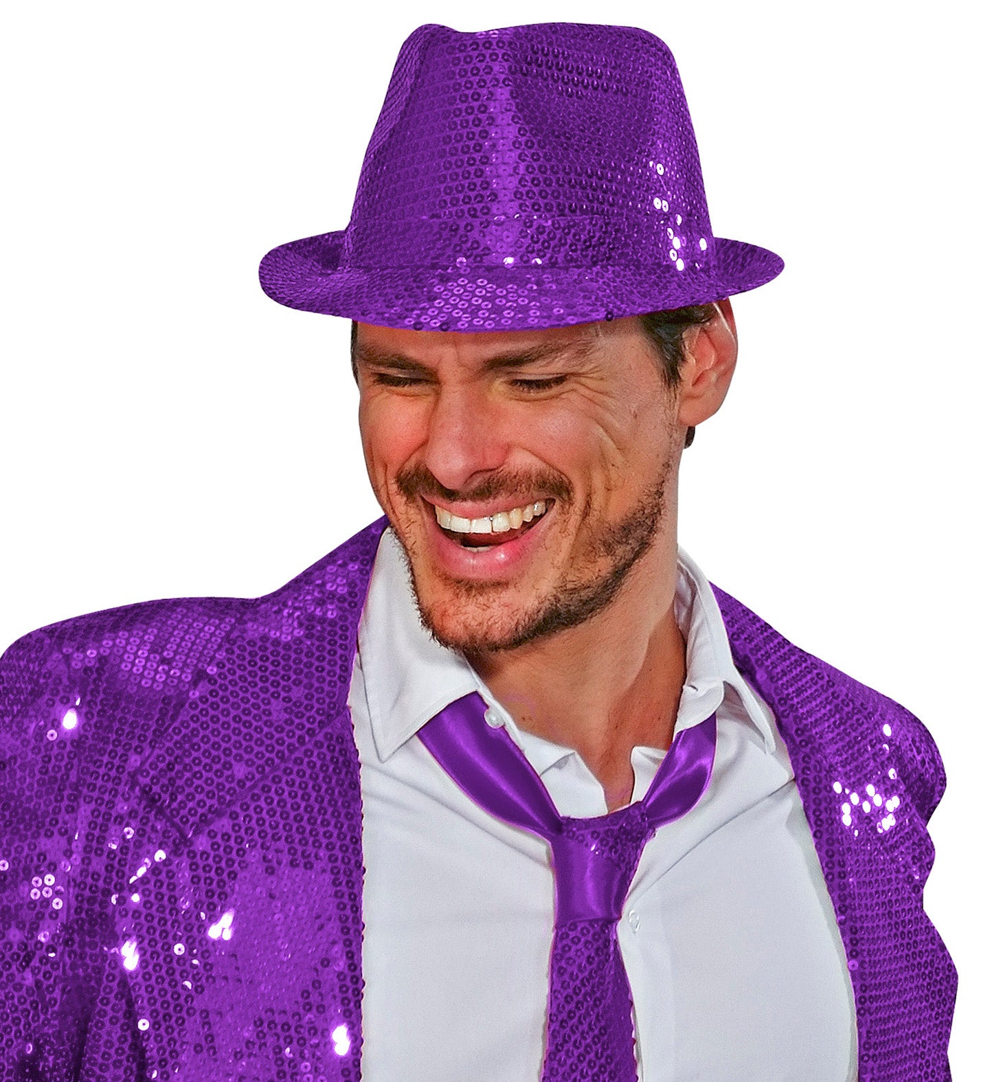 Glitzernder Fedora mit lila Pailletten