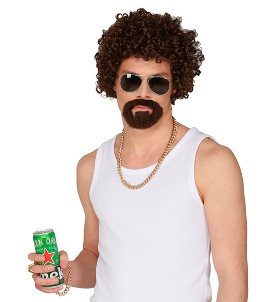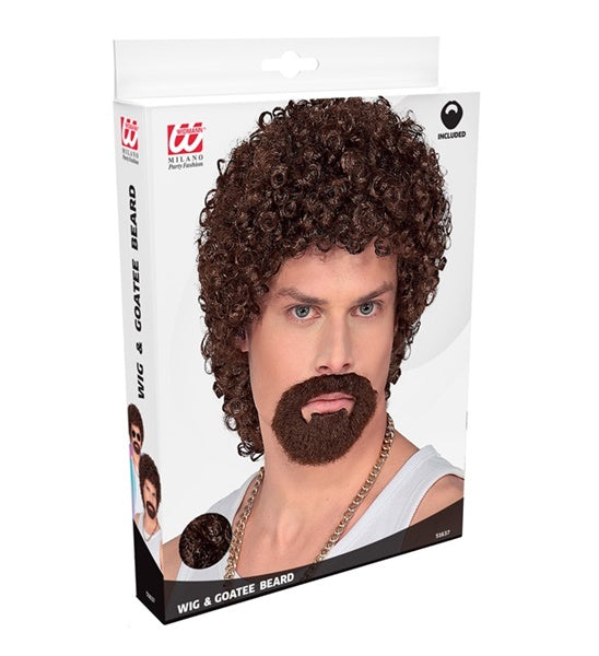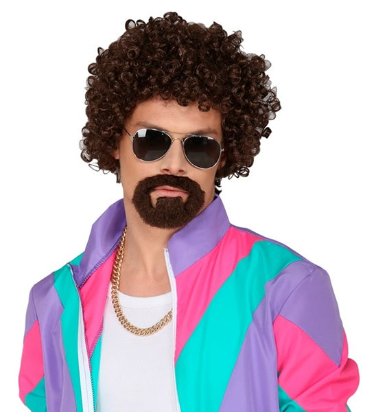 Lockenperücke Disco mit Ringbart braun
