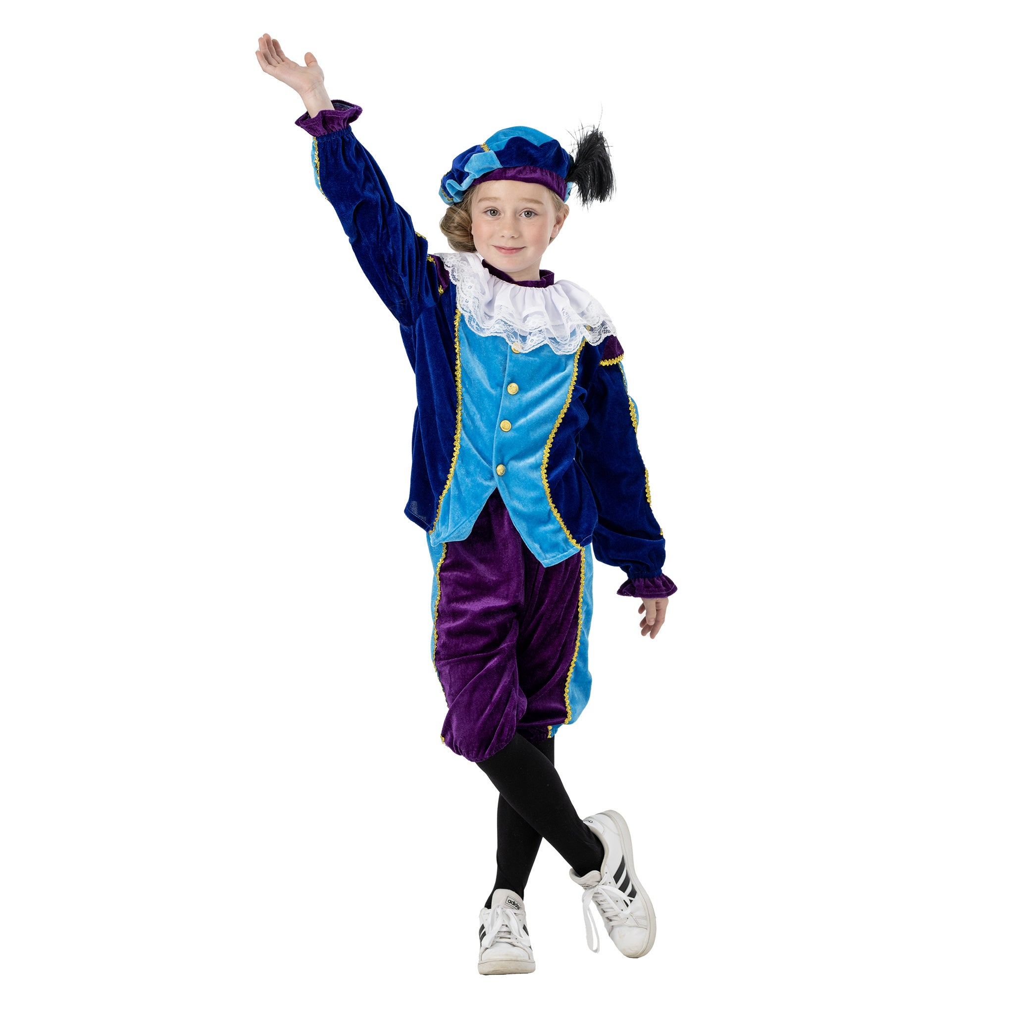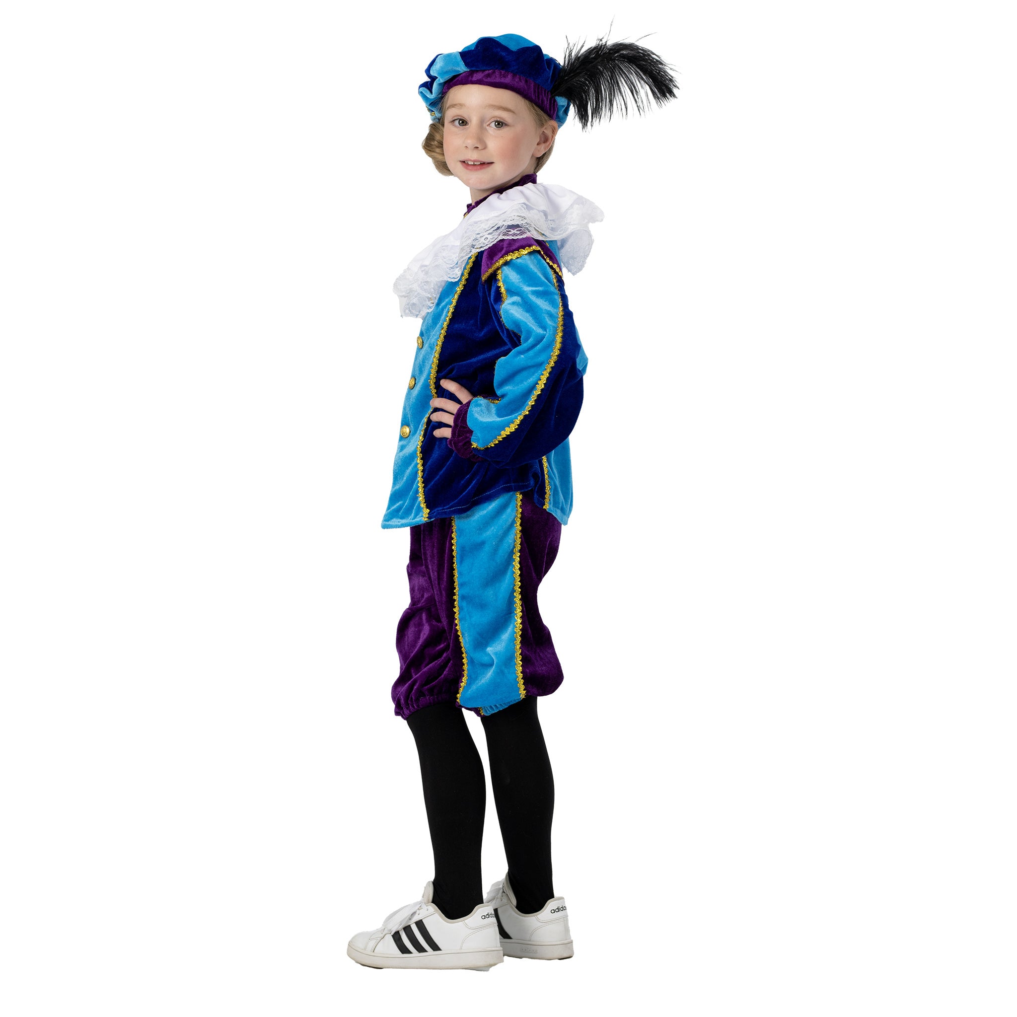 Schönes Kinder-Pete-Kostüm für Sinterklaas. Beinhaltet: Hemd, Hose, Mütze und Kragen. Mehr lesen