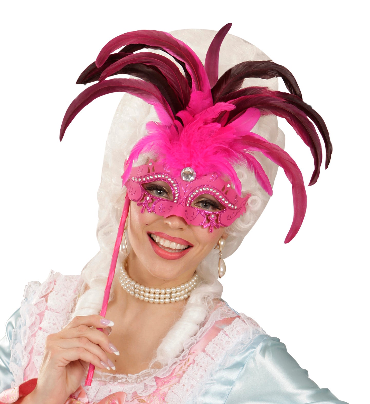 Rosa Augenmaske mit Federn