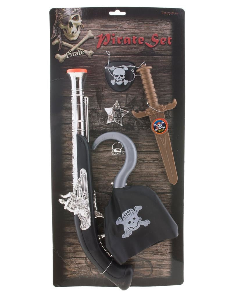 Original Piraten-Set Piet Hein 6-teilig beinhaltet Augenklappe, Dolch, Haken, Stern, Pistole, Ring Mehr lesen