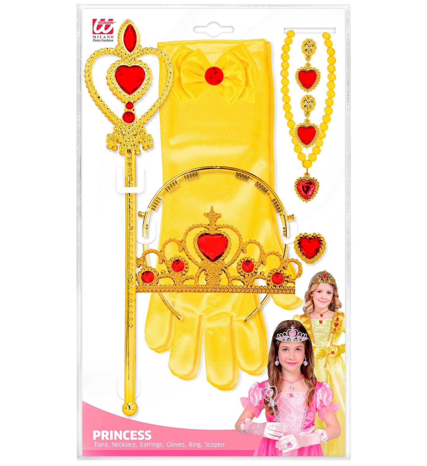 Set in Gelb bestehend aus: Krone, Handschuhe, Zauberstab, Halskette, Ohrringe und Ring. Mehr lesen