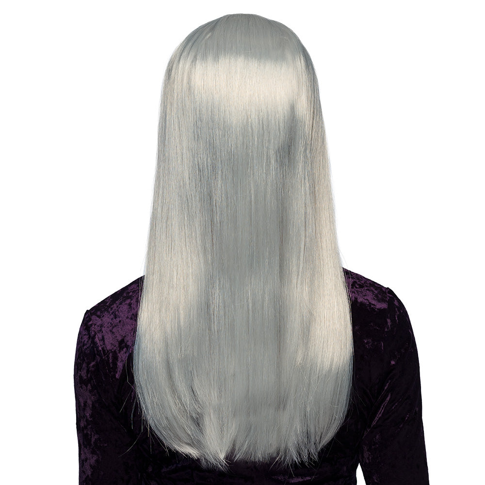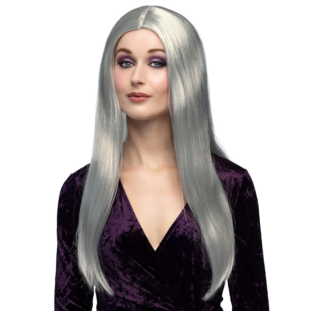 Graue Perücke lange glatte Haare Hexe