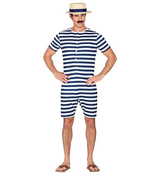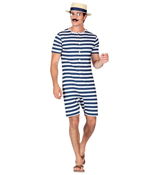 Retro Badeanzug - blau/weiß Robin
