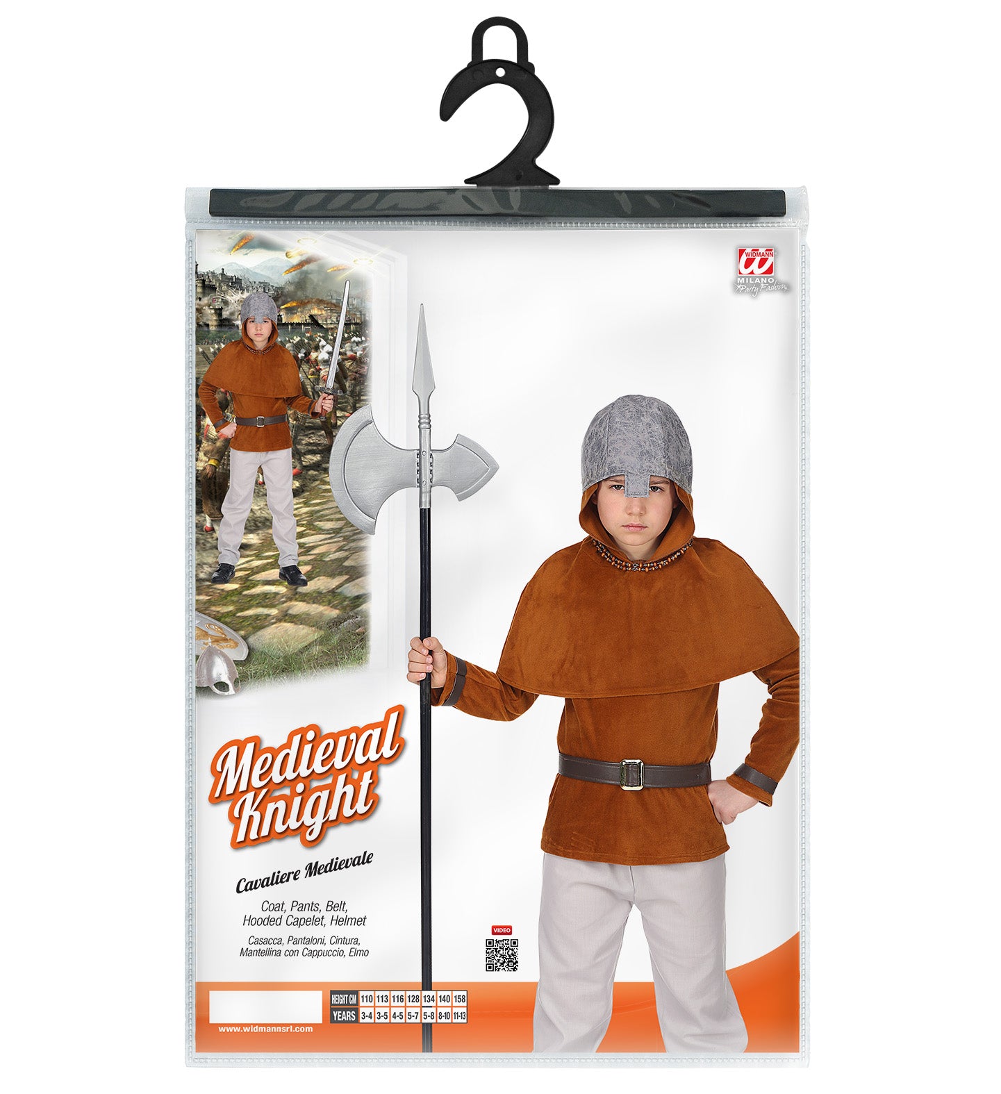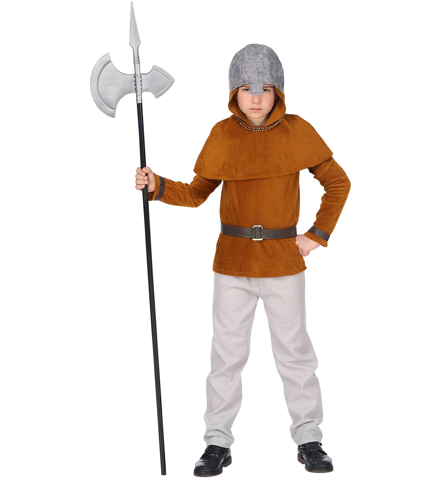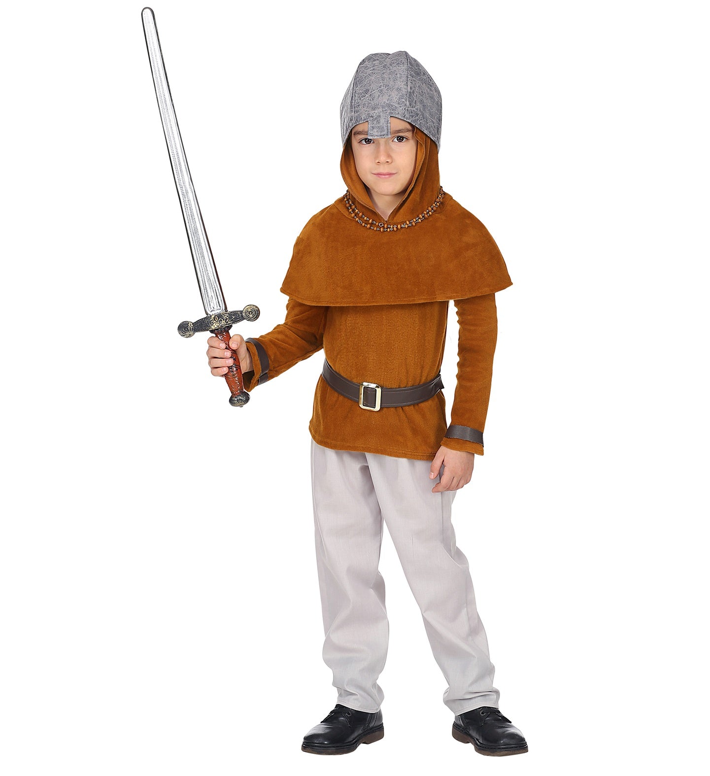 Ritterkostüm Roland für Kinder, bestehend aus Hose, Jacke, Gürtel, Umhang mit Kapuze, Helm Mehr lesen