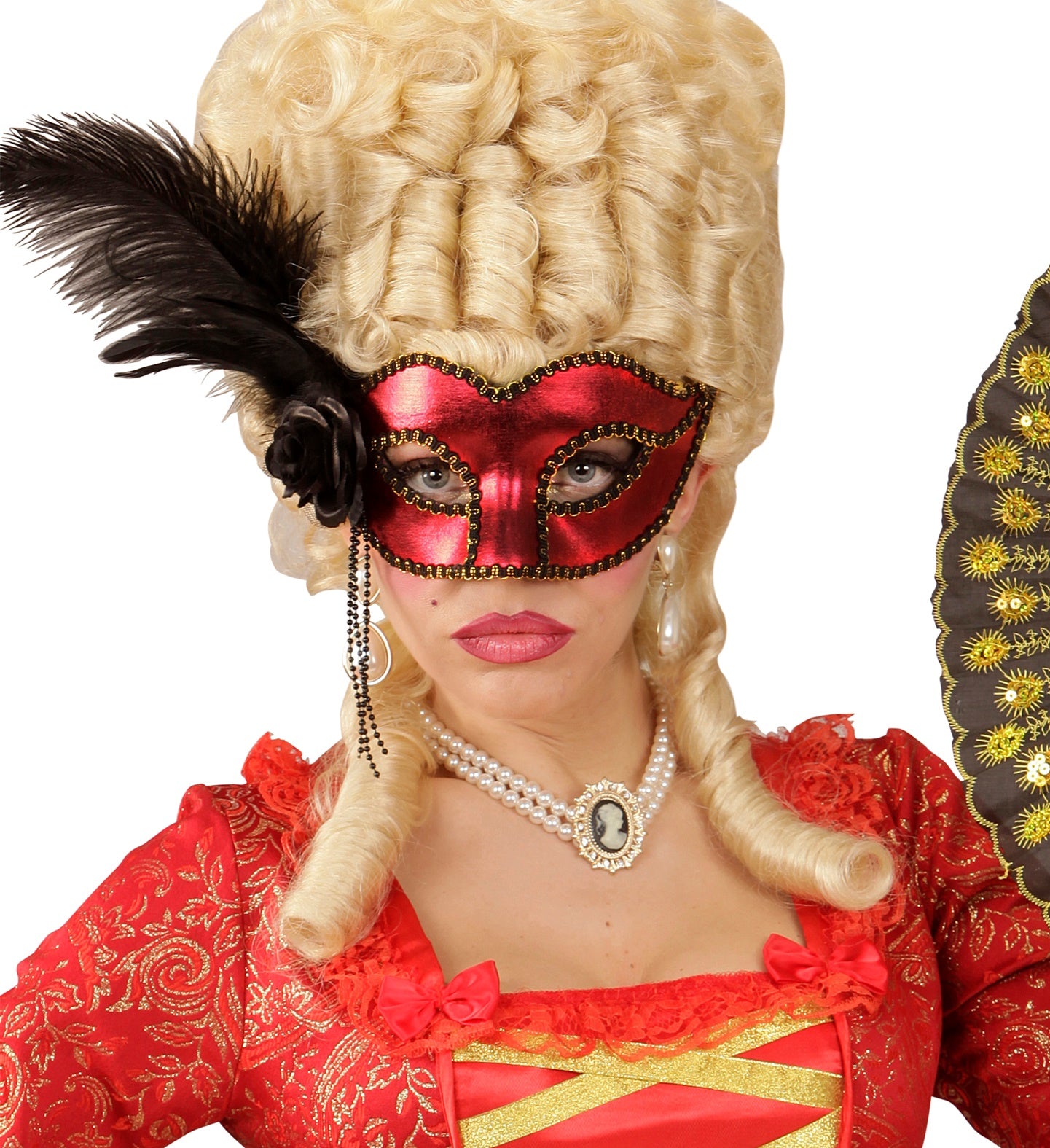 Verwandeln Sie Ihren Look mit dieser rot-metallischen venezianischen Augenmaske! Perfekt für einen geheimnisvollen Auftritt auf jeder Party. Trauen Sie sich?... Mehr lesen