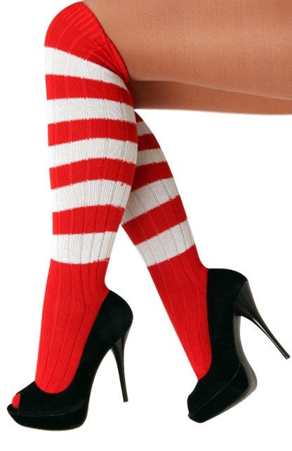 Rot-weiß gestreifte Kniestrümpfe Wunderschöne rot-weiß gestreifte Kniestrümpfe in Einheitsgröße. Rot-weiß gestreifte Kniestrümpfe passen zu Ihrem Karnevalsanzug oder Canaval-Kostüm aus dem... Mehr lesen