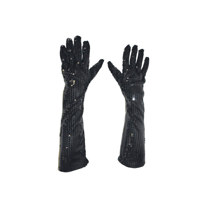 Schwarze Glitzerhandschuhe mit Pailletten, 45 cm