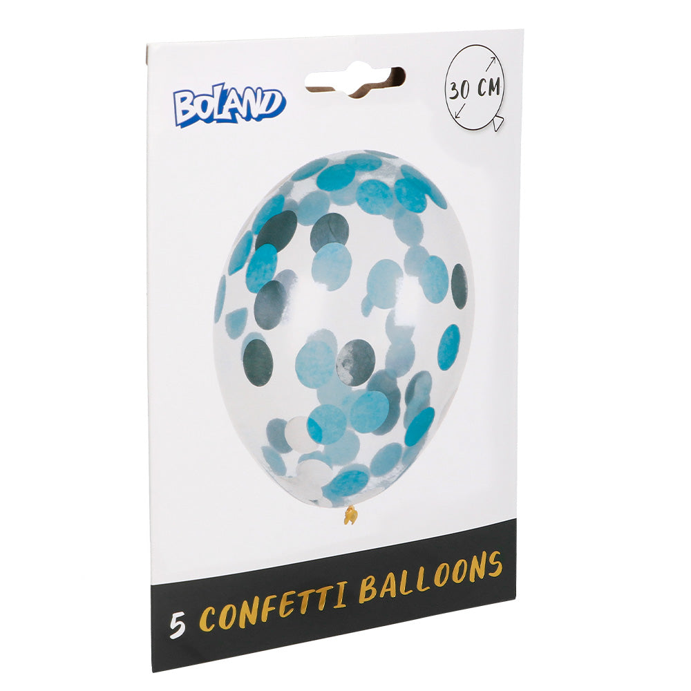 5er Set Konfettiballons blau/silber
