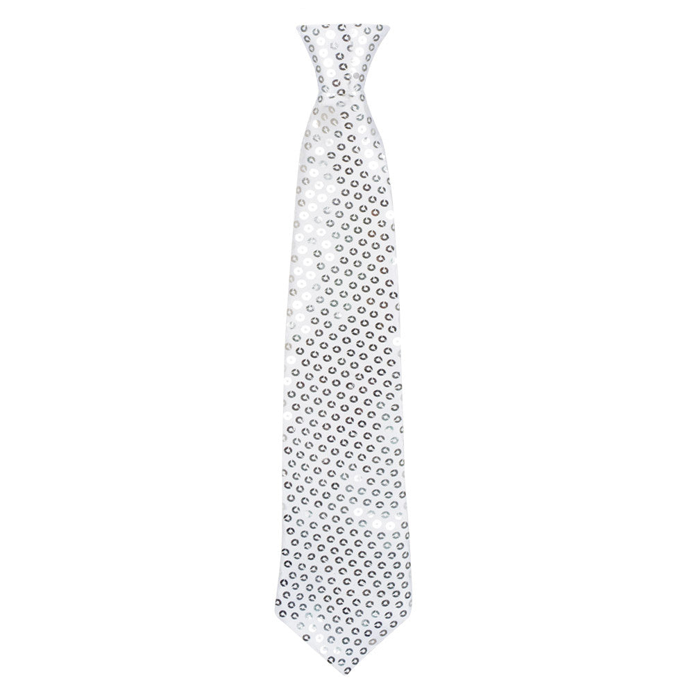 Originelle silberne Partykrawatte mit Pailletten Mehr lesen